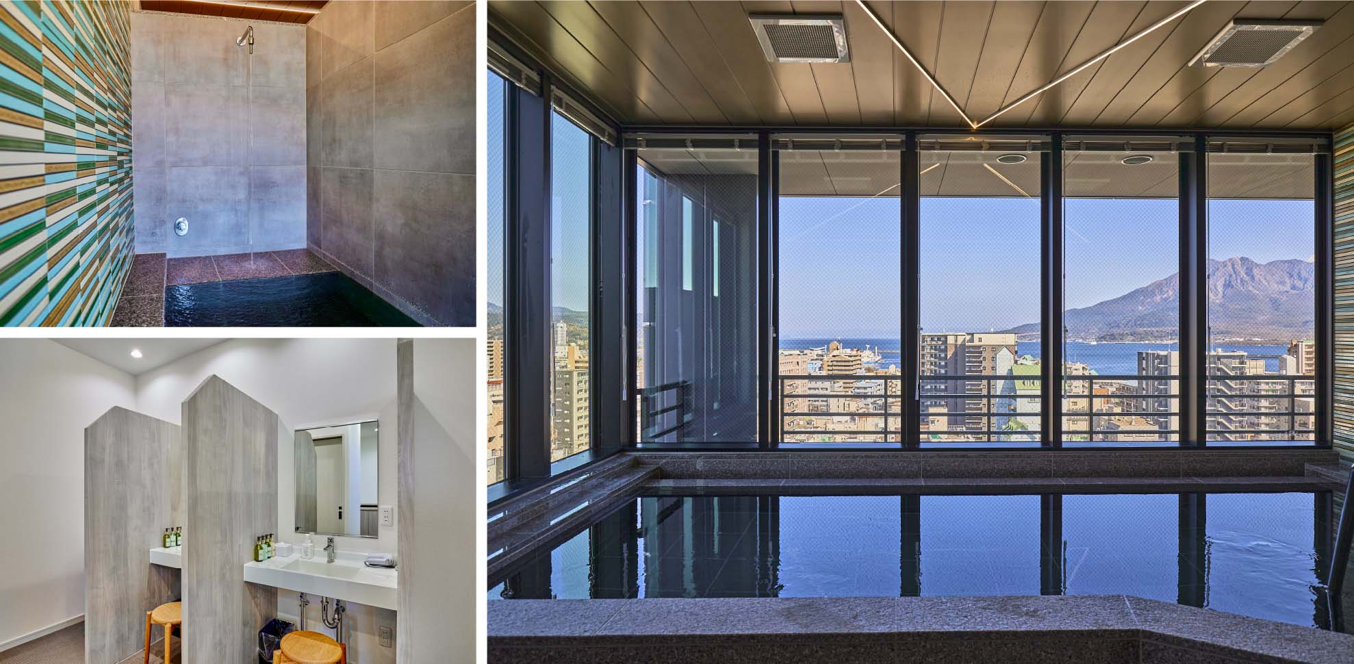 雄大な桜島を望む大浴場では、